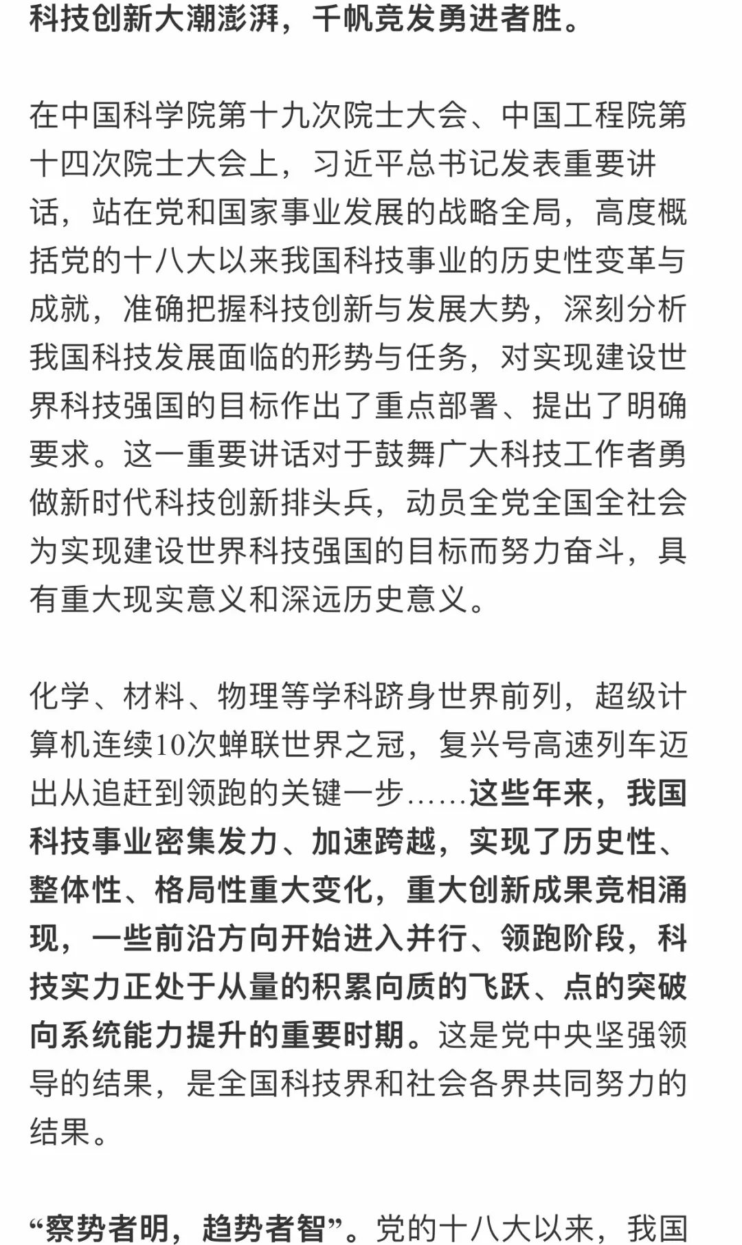 深刻把握科技創(chuàng)新與發(fā)展大勢—— 一論學(xué)習(xí)貫徹習(xí)近平總書記兩院院士大會重要講話