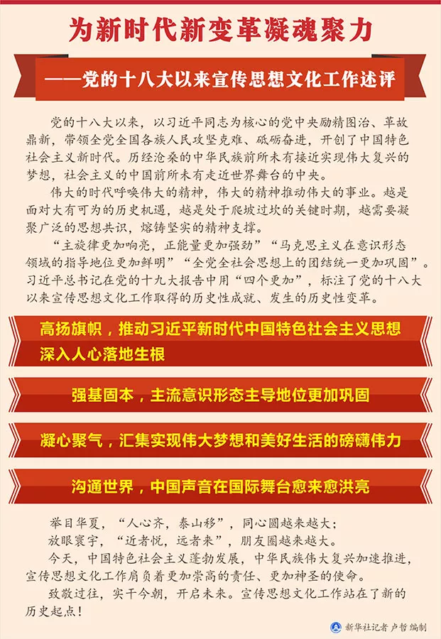 為新時(shí)代新變革凝魂聚力 ── 黨的十八大以來宣傳思想文化工作述評