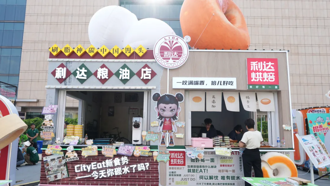 展區(qū)主要展示利達(dá)主食與利達(dá)烘焙兩個(gè)系列產(chǎn)品,結(jié)合年輕主題,搭建了以“饅頭-中國刷脂神器”為主題的互動打卡點(diǎn),設(shè)立打卡贈送“漆畫扇”活動,更好地向年輕群體宣傳了利達(dá)品牌,打破消費(fèi)者對利達(dá)的固有認(rèn)知,和年輕的消費(fèi)群體展開友好的交流,為消費(fèi)者提供多“young”性的優(yōu)質(zhì)碳水選擇。此外,結(jié)合夜市消費(fèi)場景,新研發(fā)的利達(dá)花樣主食土豆、紫薯、香煎肉花卷、利達(dá)鍋巴菜貝果等,一經(jīng)推出,立即成為市集的網(wǎng)紅產(chǎn)品,深受消費(fèi)者喜愛。