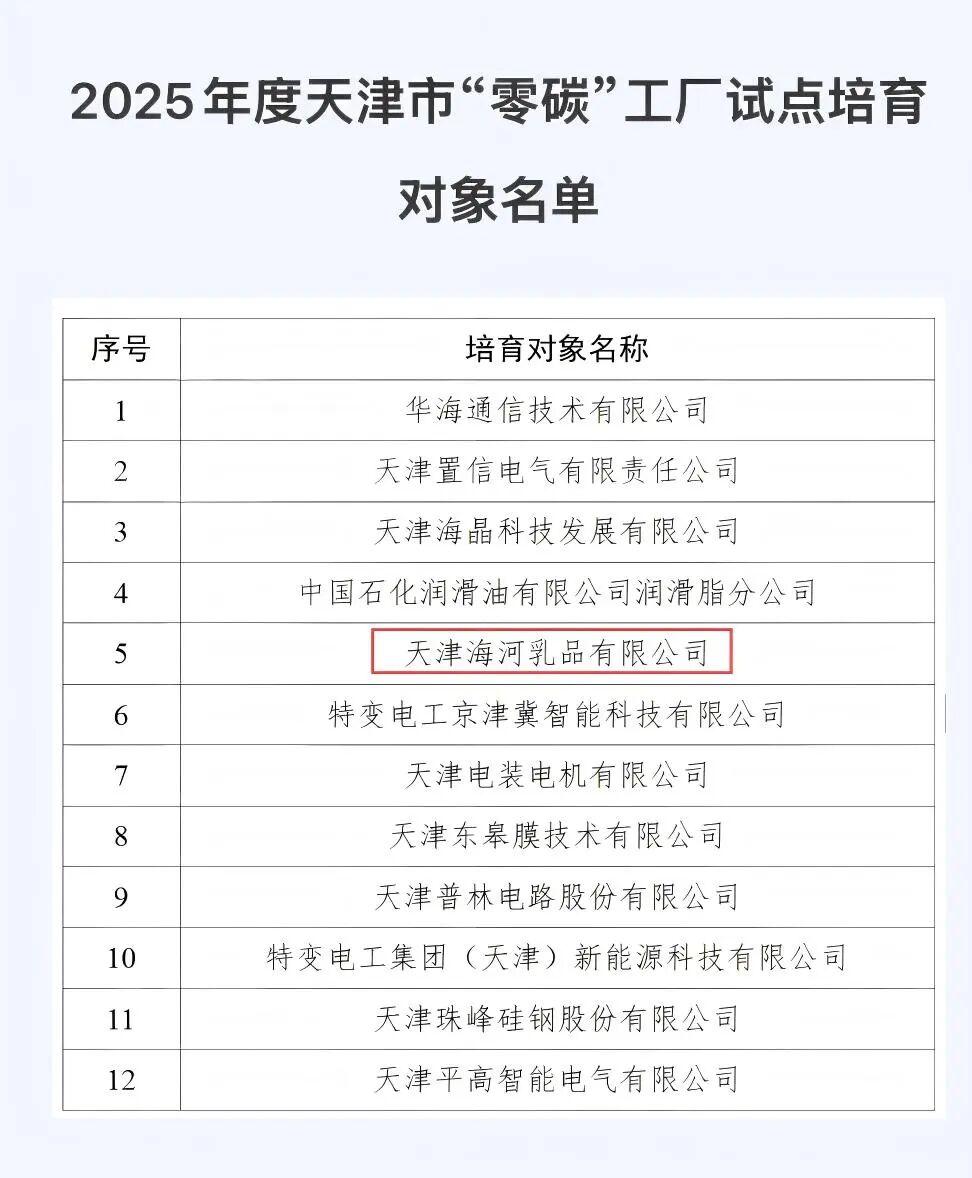 近日,天津市工業(yè)和信息化局公布2025年度“零碳”工廠試點培育對象名單。海河乳品公司憑借在綠色生產(chǎn)、能源結構優(yōu)化及低碳創(chuàng)新領域的卓越實踐與前瞻布局,經(jīng)過多輪嚴格篩選,從眾多申報企業(yè)中脫穎而出,成功入選“零碳”工廠試點培育對象名單,彰顯了中華老字號乳企在綠色轉(zhuǎn)型道路上的先行姿態(tài)。
