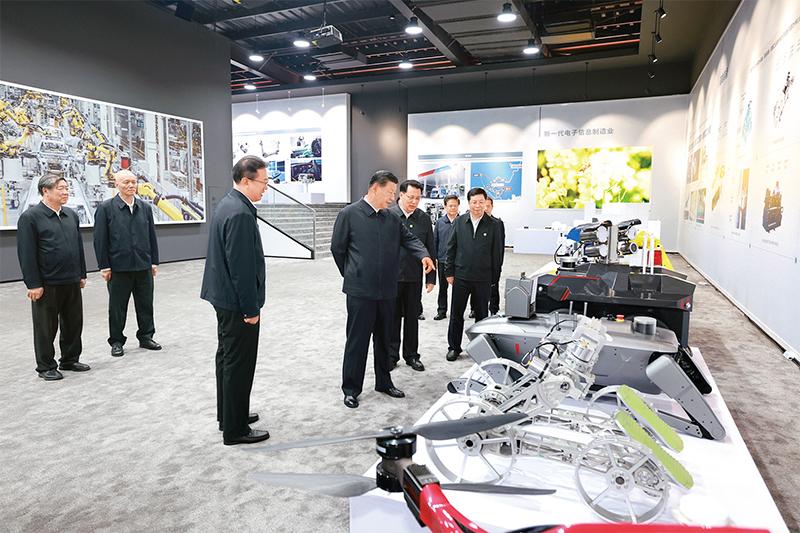 2023年10月10日至13日,中共中央總書記、國家主席、中央軍委主席習(xí)近平在江西考察。這是11日上午,習(xí)近平在景德鎮(zhèn)市昌河飛機(jī)工業(yè)(集團(tuán))有限公司考察。 新華社記者 燕雁/攝