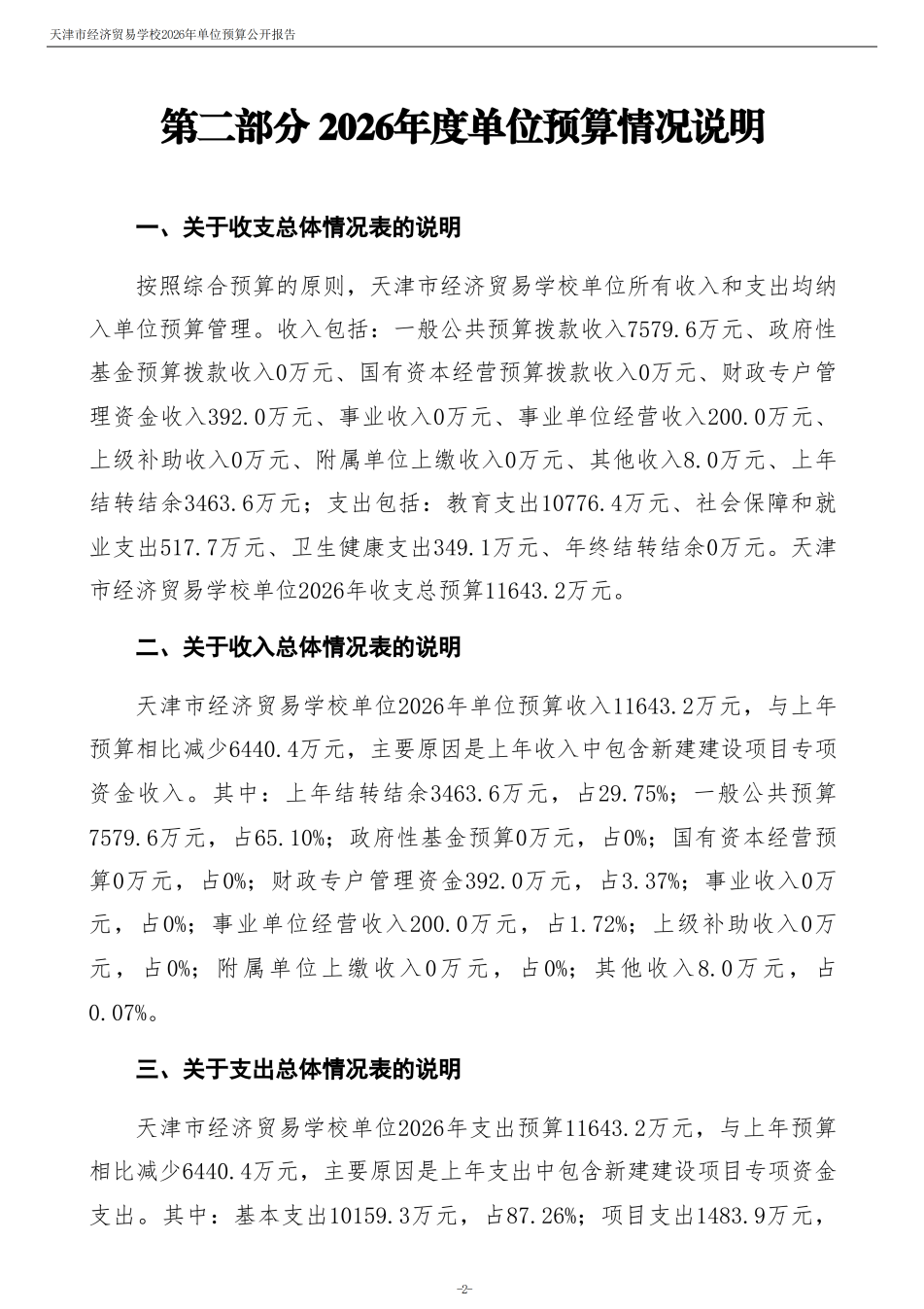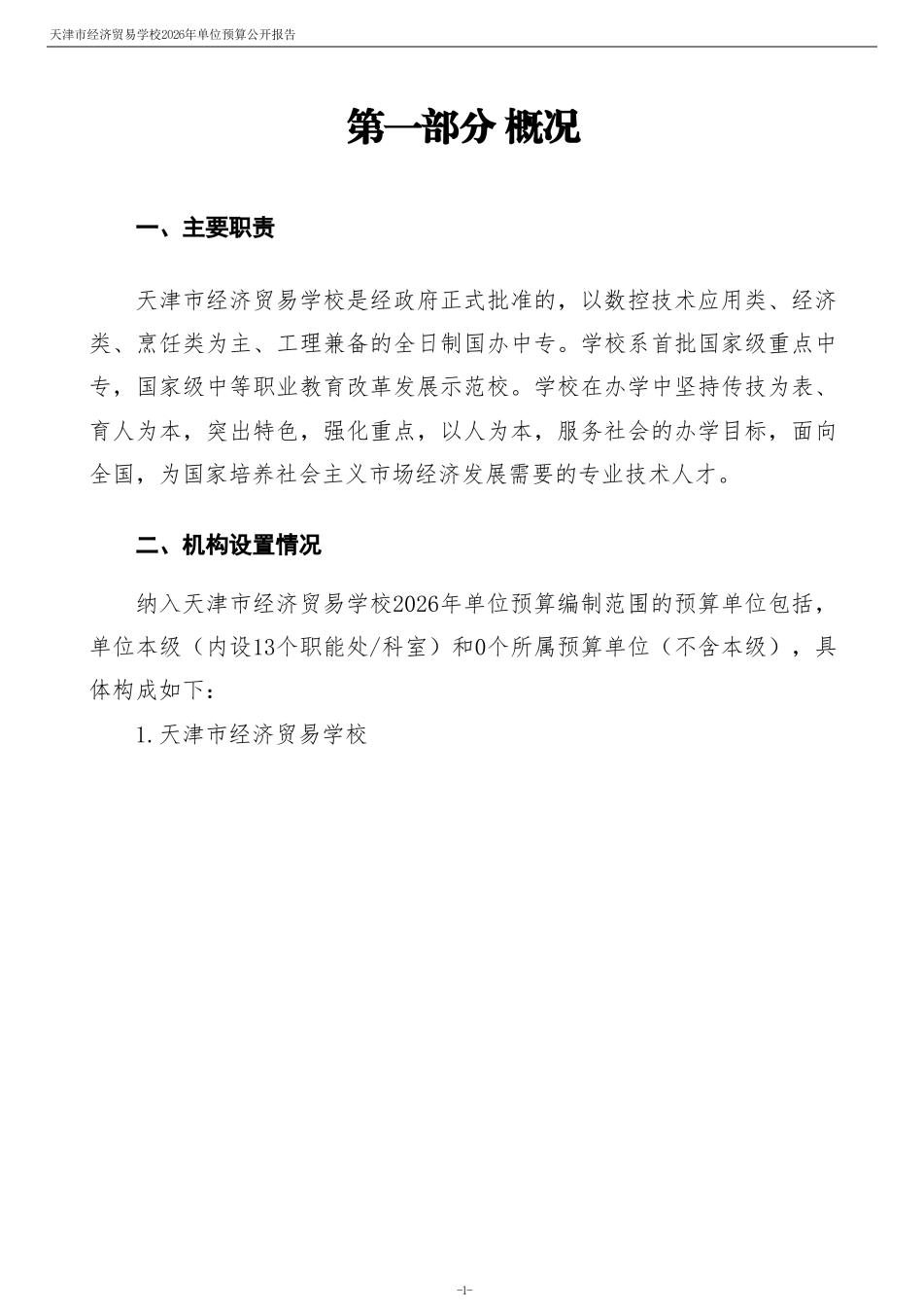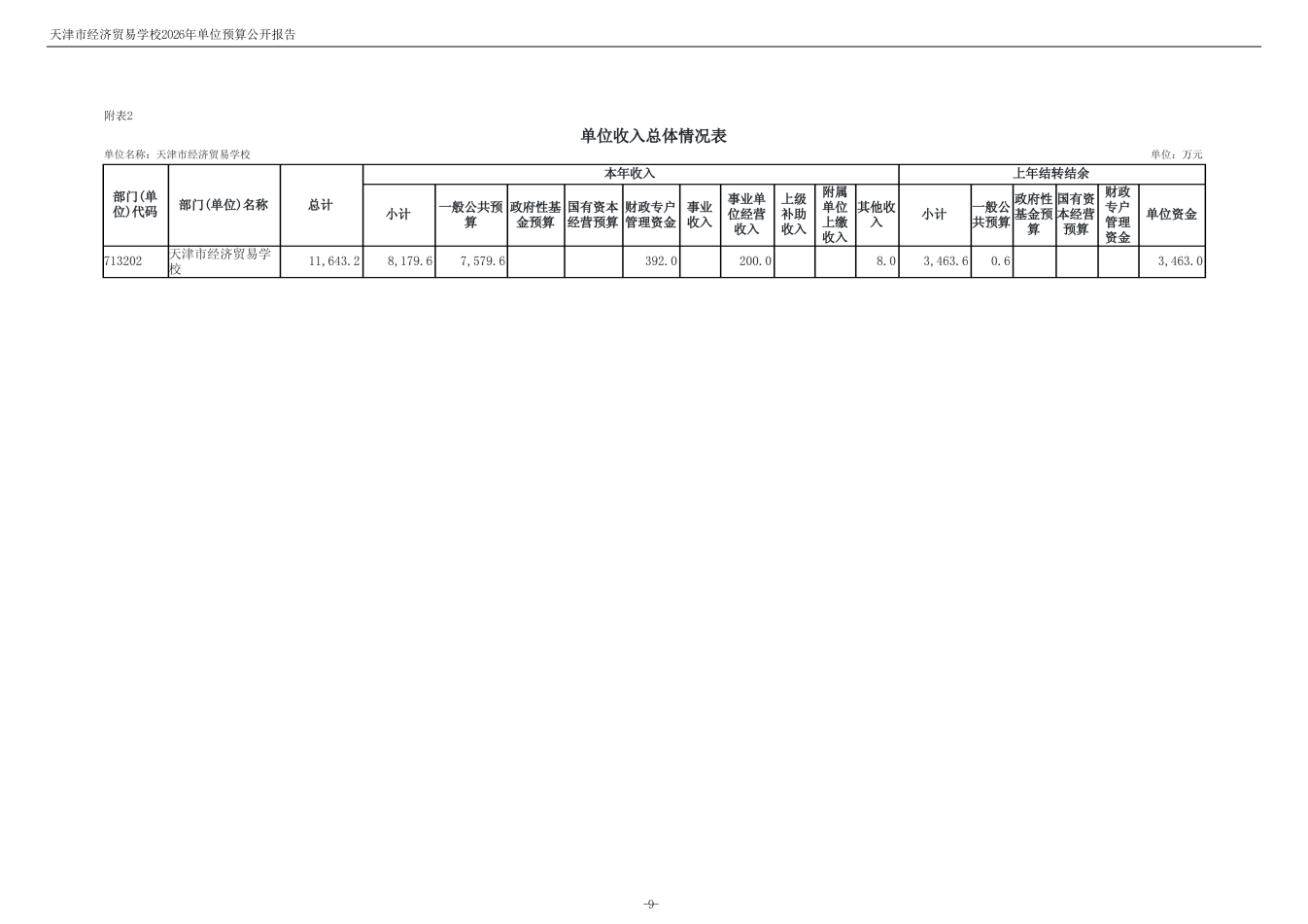天津市經(jīng)濟貿(mào)易學(xué)校2026年度單位預(yù)算