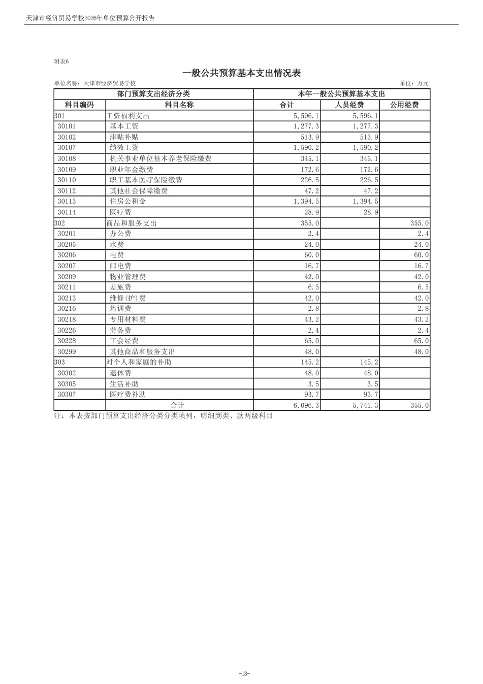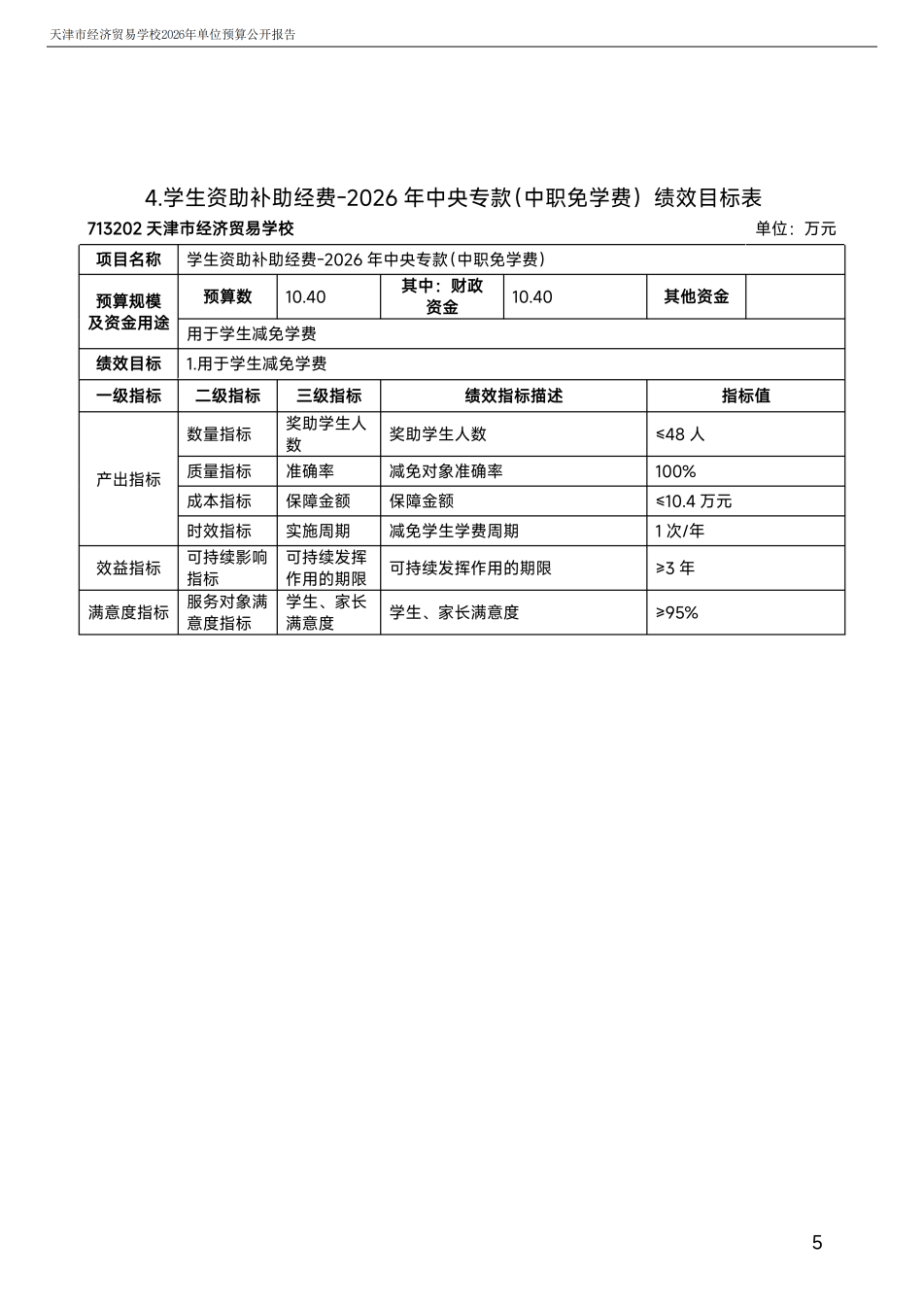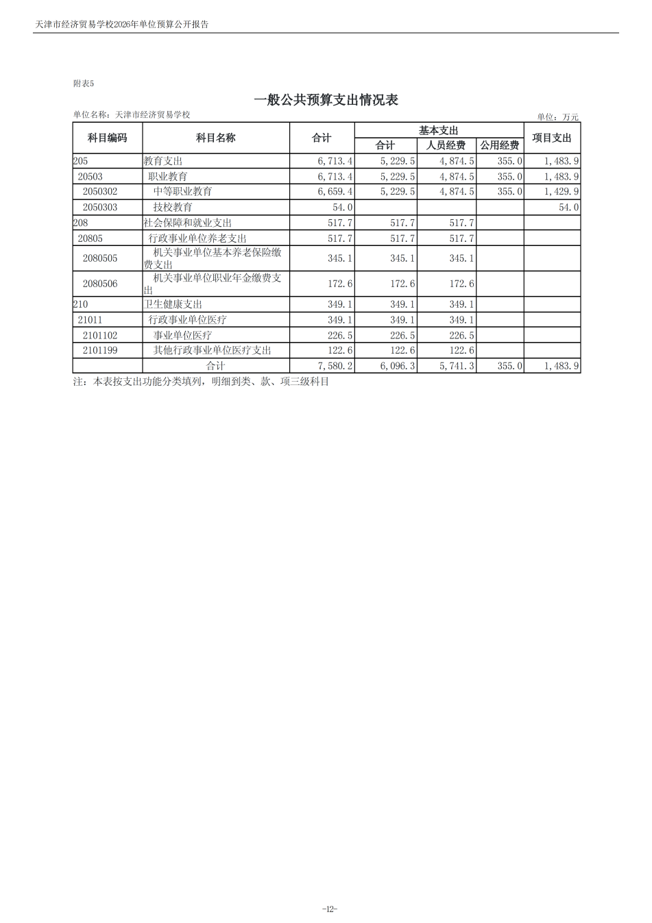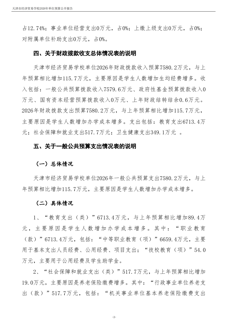 天津市經(jīng)濟貿(mào)易學(xué)校2026年度單位預(yù)算